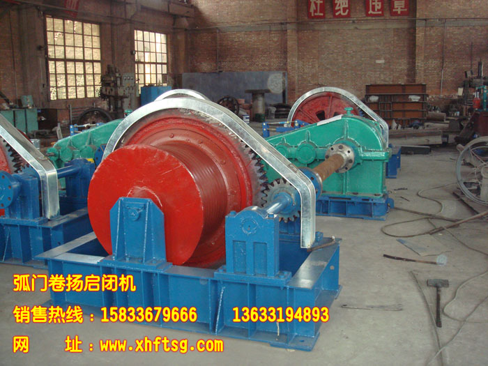 ●台车式移动启闭机通常行走在闸门门槽顶部平面或平面以上的混凝土排架上,门式移动启闭机仅行走在闸门门槽顶部平面上。门式启闭机门架腿上有时也设回转式悬臂吊钩以便起吊其他设备,从而构成多用途门形移动式启闭机 欢迎各界朋友考察,指导和业务洽谈。 手动卷扬启闭机又称手摇绞车,手动卷扬启闭机是由人力或机械动力驱动卷筒、卷绕绳索来完成牵引工作的装置。可以垂直提升、水平或倾斜拽引重物。卷扬机分为手动卷扬机和电动卷扬机两种。现在以电动卷扬机为主。电动卷扬机由电动机、联轴节、制动器、齿轮箱和卷筒组成,共同安装在机架上。对于起升高度和装卸量大工作频繁的情况,调速性能好,能令空钩快速下降。对安装就位或敏感的物料,能用较小速度。 手摇卷扬启闭机设有上下行程限位形状作极限保护运行。吊点的中心距应按参数中规定的范围内选择并确定数值。机器整体的机械强度按轻型工作级别计算,电动机按短期运行,若工作级别需要提高,用户应提出,然后更换启闭机制造图样种类 ,制造并供货。
